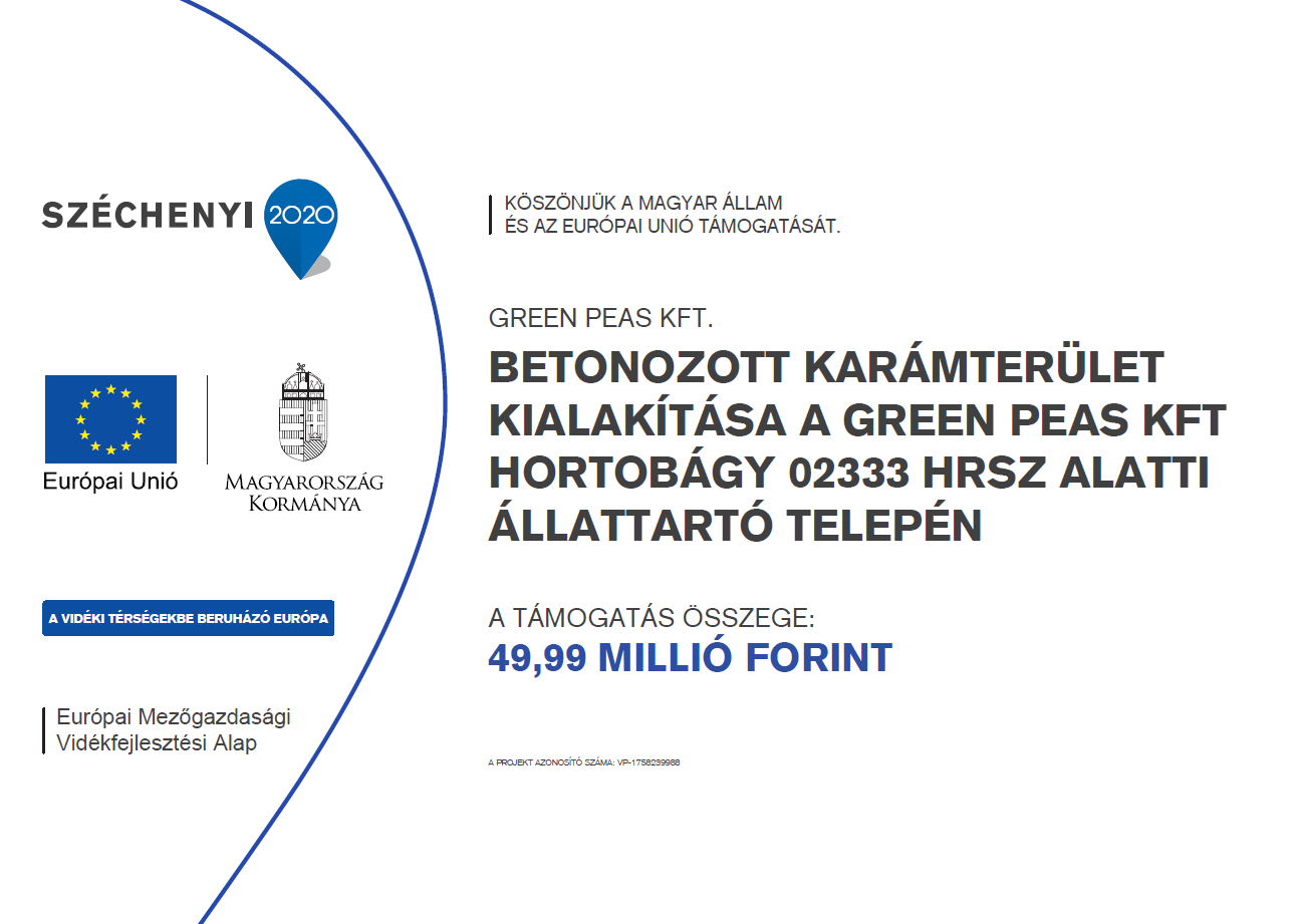 A projekt címe: Betonozott karámterület kialakítása a Green Peas KFT Hortobágy 02333 hrsz alatti állattartó t