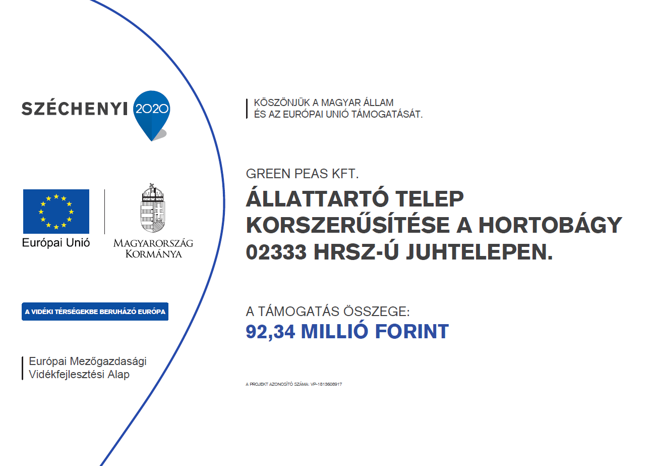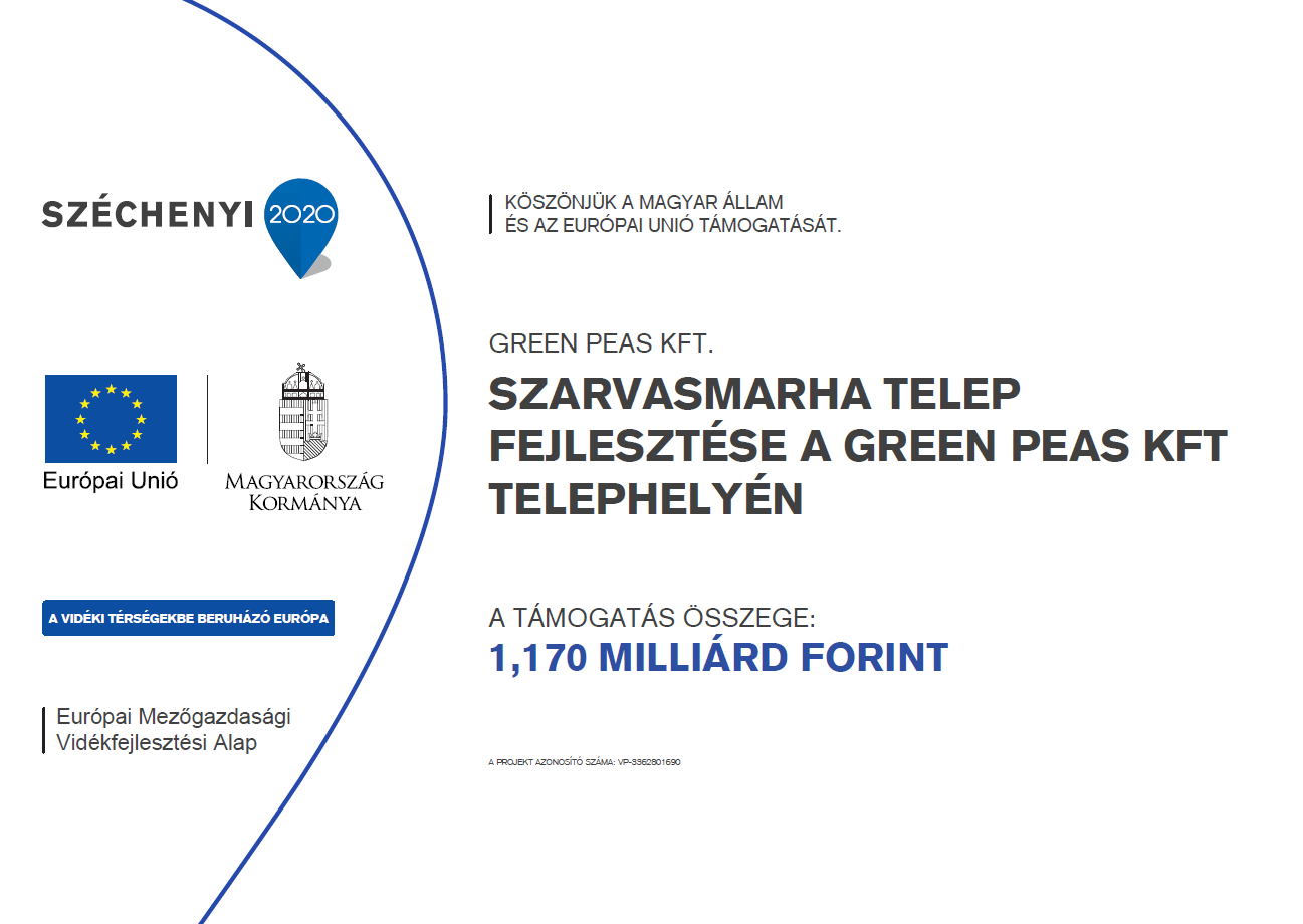 A projekt címe: Szarvasmarha telep fejlesztése a Green Peas KFT telephelyén