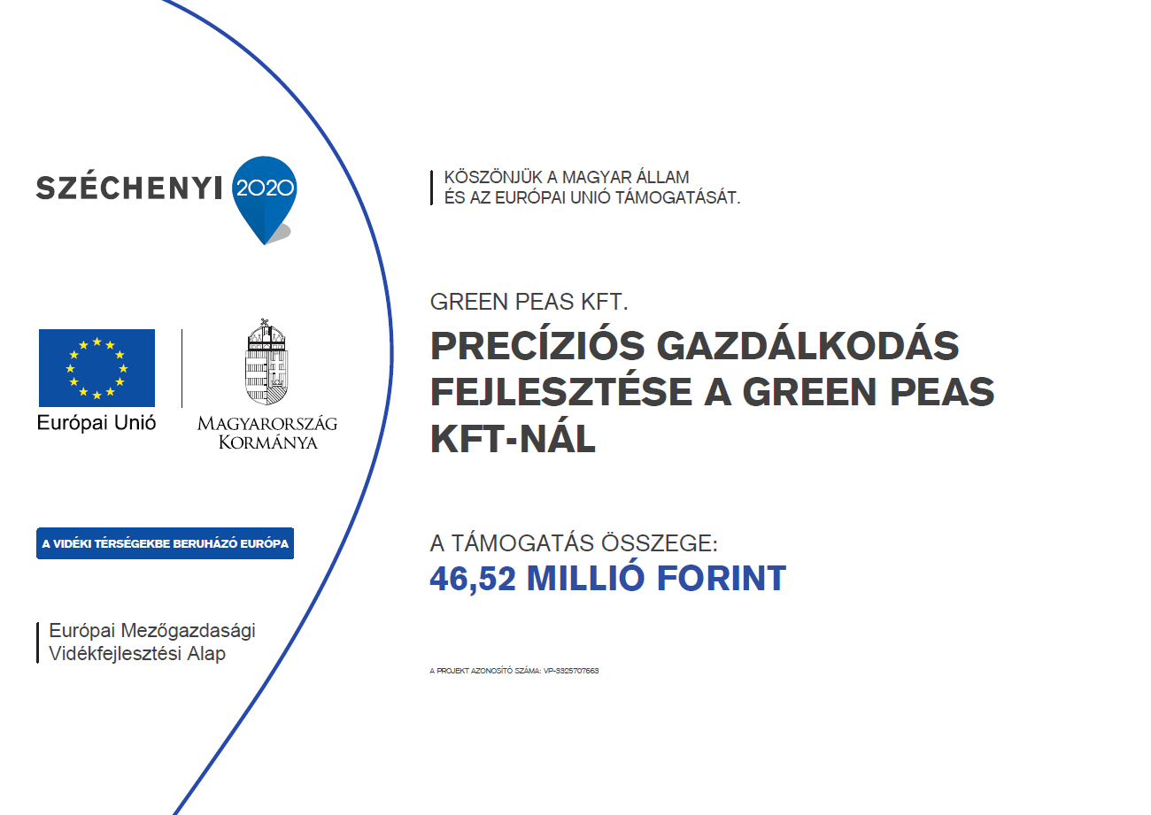A projekt címe: Precíziós gazdálkodás fejlesztése a Green Peas KFT-nál